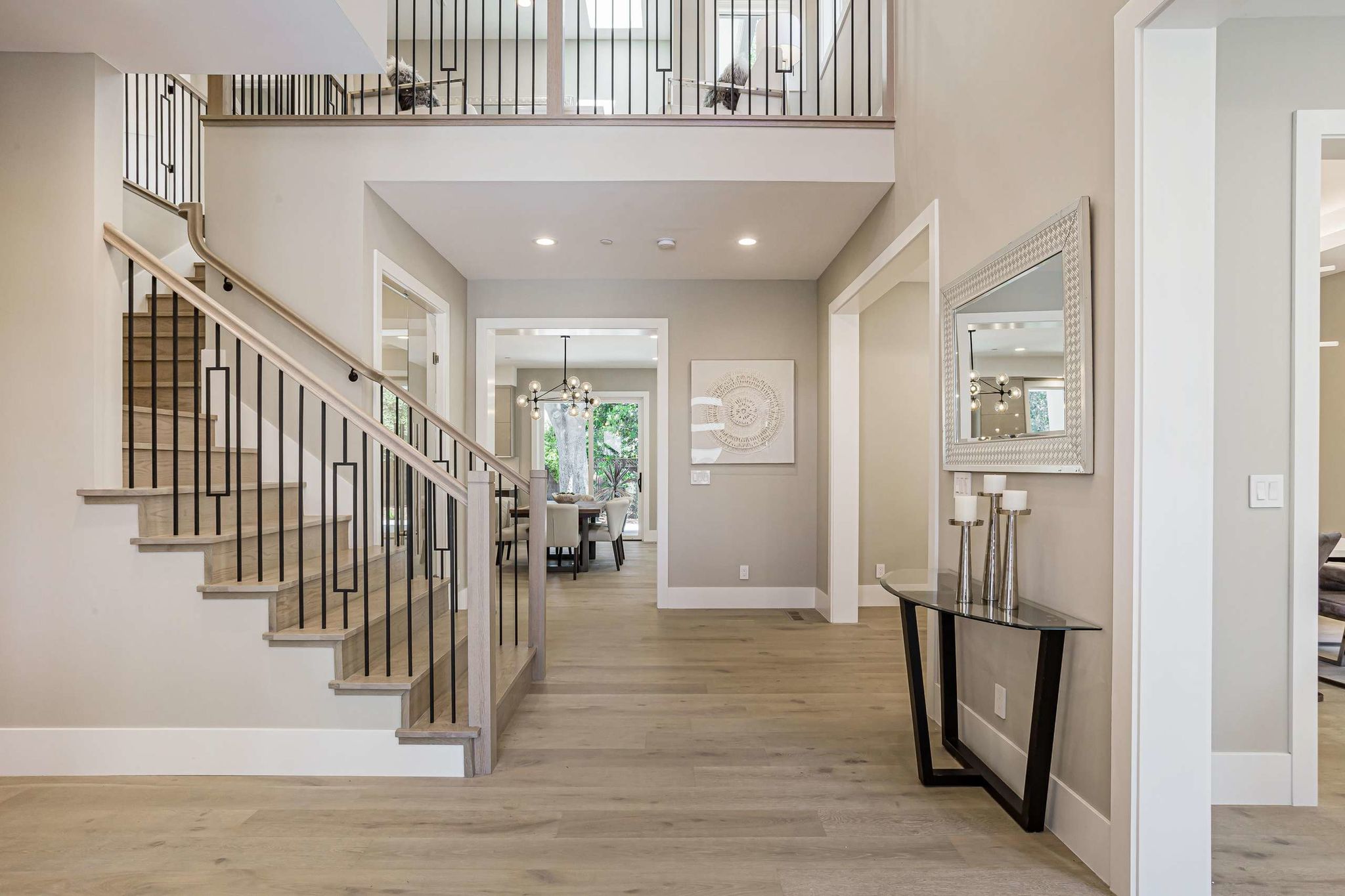 This stunning new home has 4 bedroom suites, study, loft & 1/2 bath within 3,414 sq.ft. (per plans) on a spacious 11,170 sq.ft. lot. Every detail attended to & no expense spared, this contemporary home has high-end designer finishes throughout. The unparalleled kitchen offers Thermador appliances, island with waterfall quartz counters, breakfast bar, designer lights, USB ports & European cabinets. Wine lovers will enjoy showpiece backlit wine rack & 24 inch 3 temp. zone refrigerator. Folding glass doors & open floor plan allow seamless indoor/outdoor living. Formal entertaining is perfect in the living room with fireplace & grand dining room. The master suite is a dream with cove ceiling & balcony overlooking the yard. The resort-like master bath has curbless shower, soaking tub & radiant floors. Loft offers children's play area or entertainment space. Enjoy the backyard with multiple patios, built-in BBQ, lawn & mature trees.