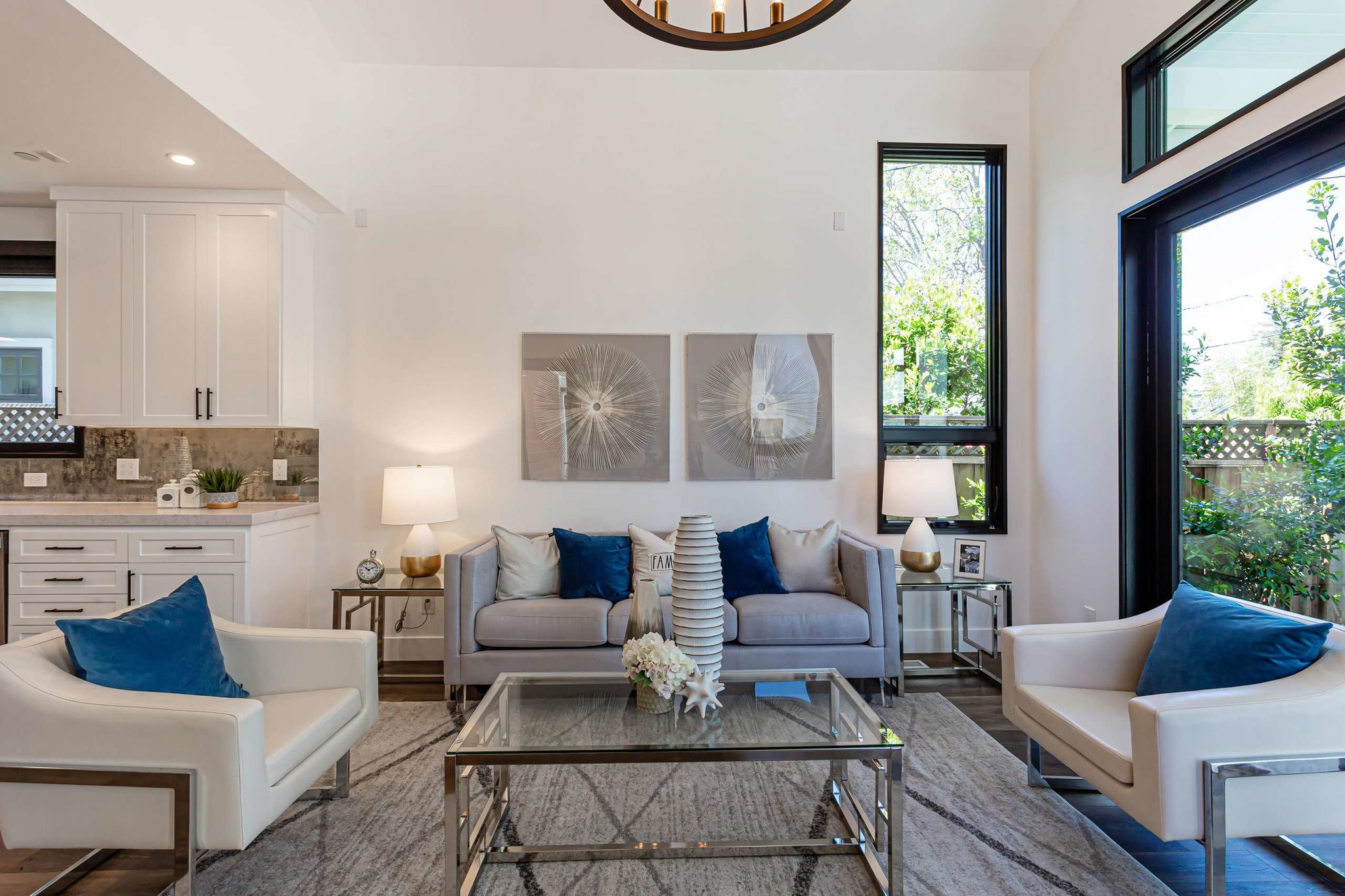 chandelier. Style and sophistication characterize the kitchen which features a