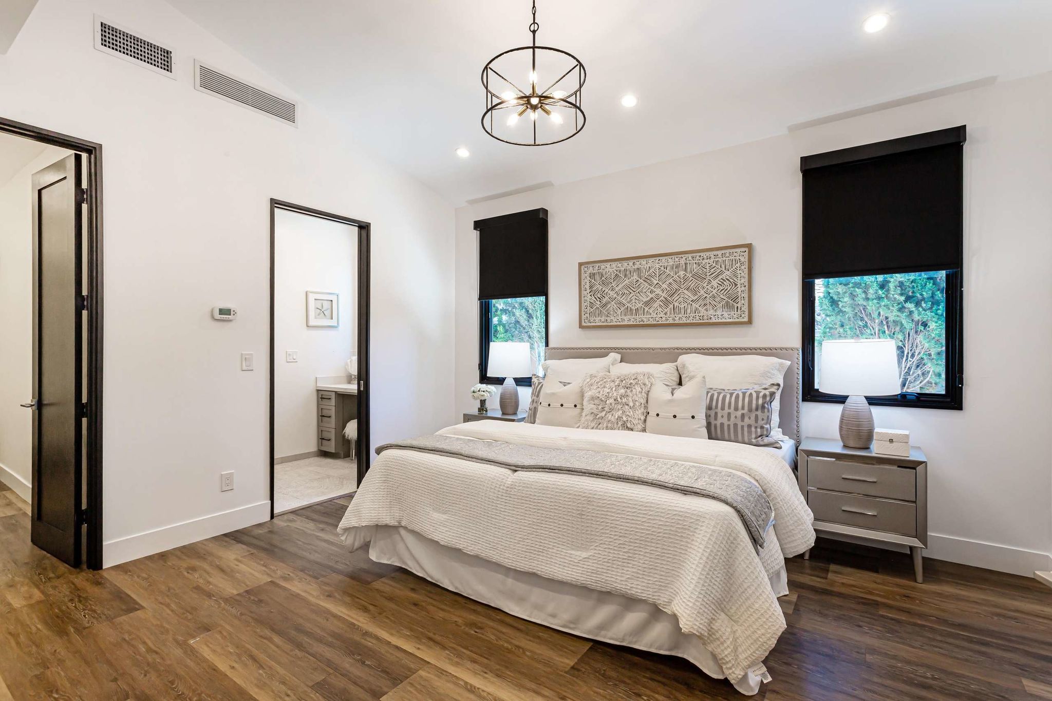 sinks, quartz counters, designer tiles, and separate makeup vanity. On the first