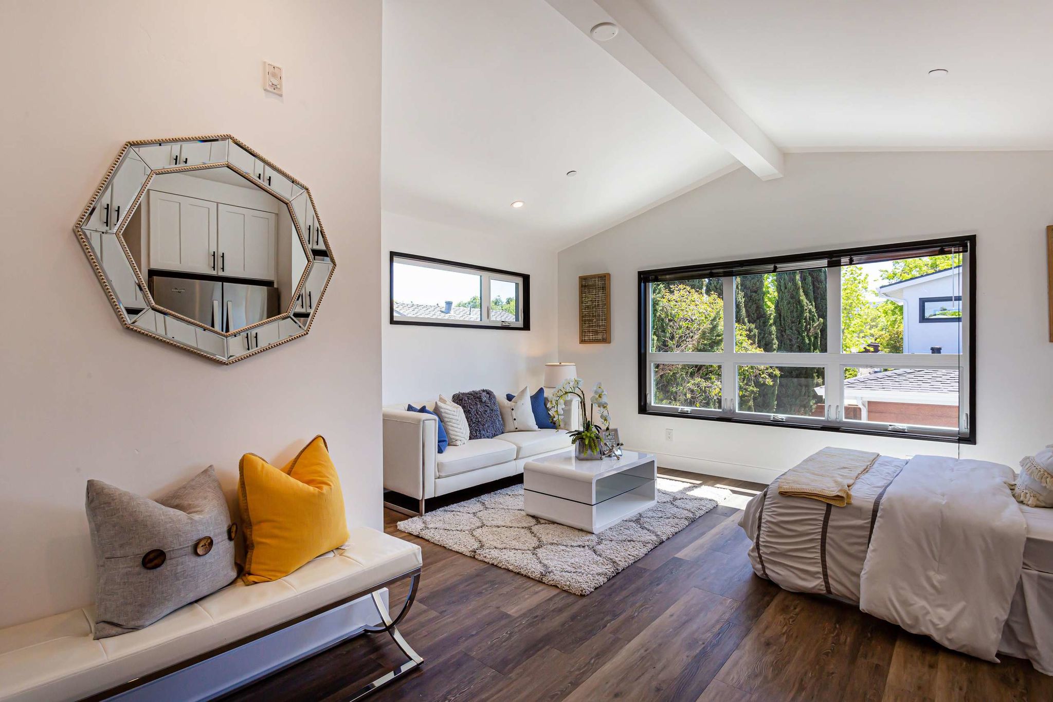 is the ADU with full kitchen, and laundry. This home is ideally located two