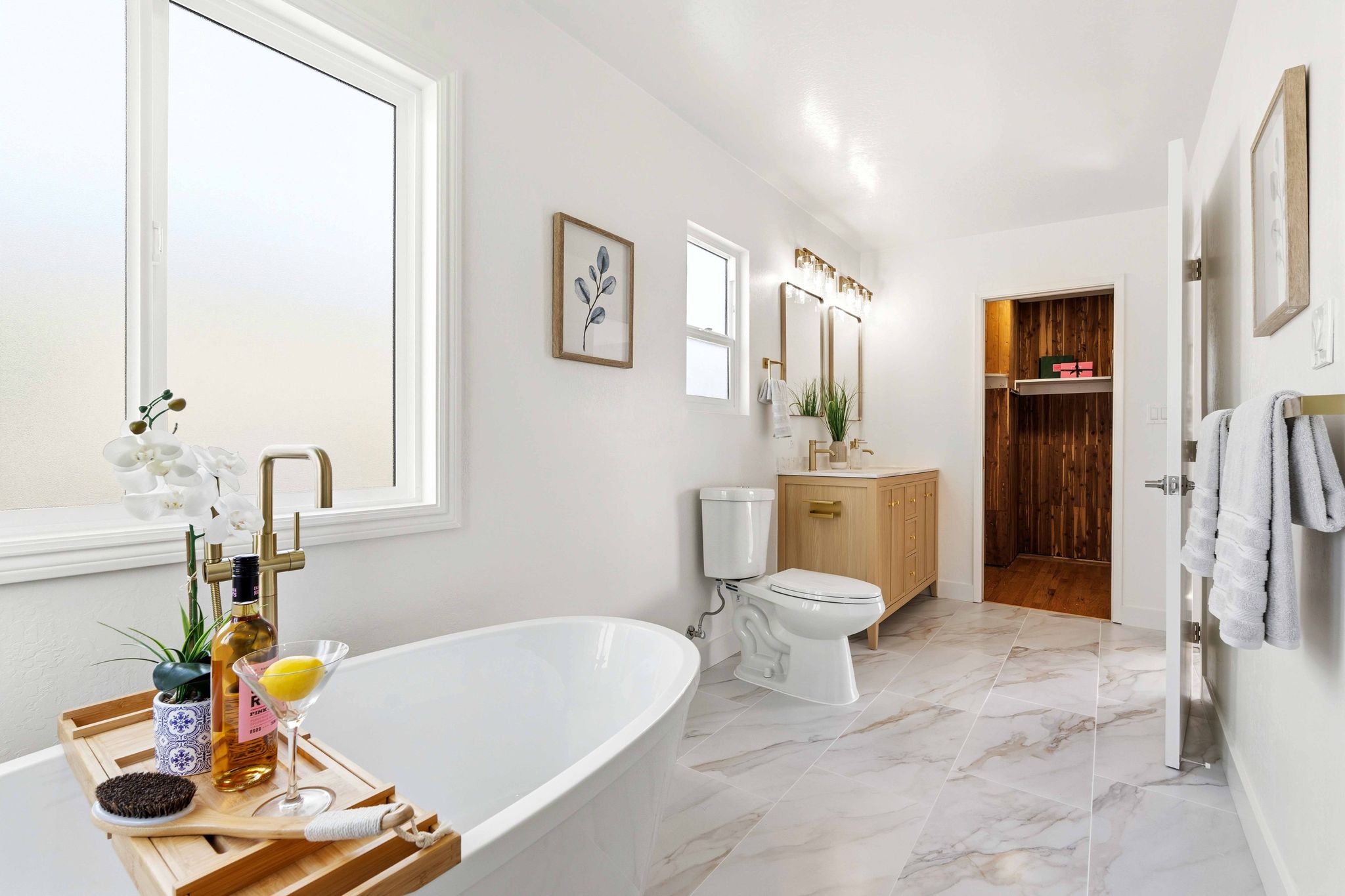 主卧套房宽敞舒适,配备如同水疗般的浴室设计,包括双洗手台、独立淋浴、浴缸以及扩展后的布局,同时可欣赏双子峰( Twin Peaks) 及城市灯光景观。