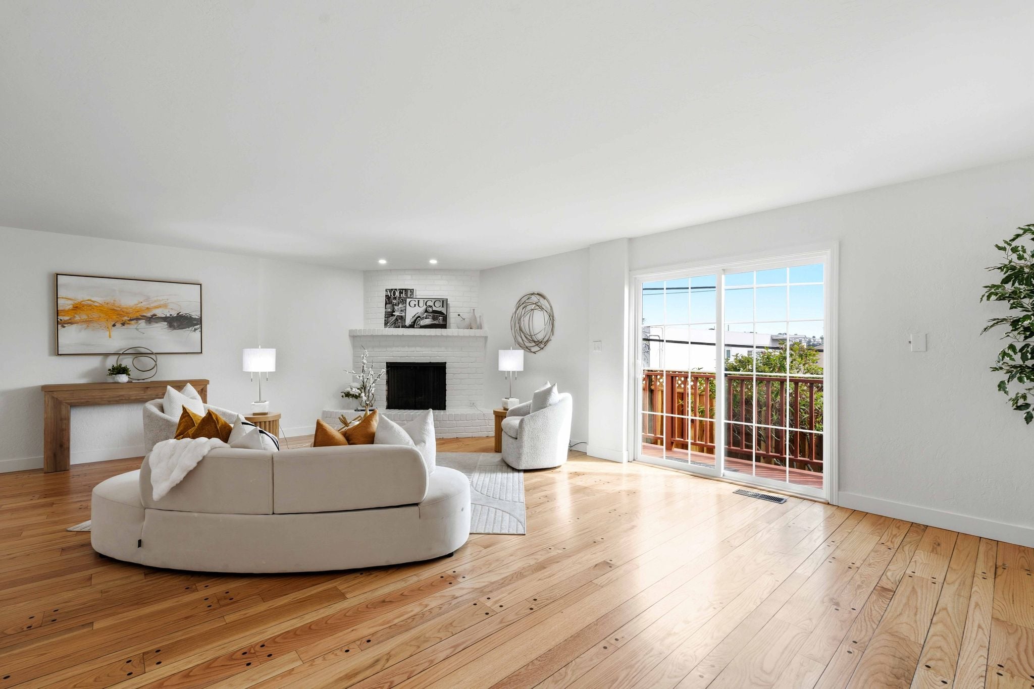 Thoughtfully updated throughout with refinished hardwood floors, fresh paint, updated lighting, and modern finishes. Additional improvements include new electrical panels, refreshed landscaping, and a two-car tandem garage with epoxy flooring.