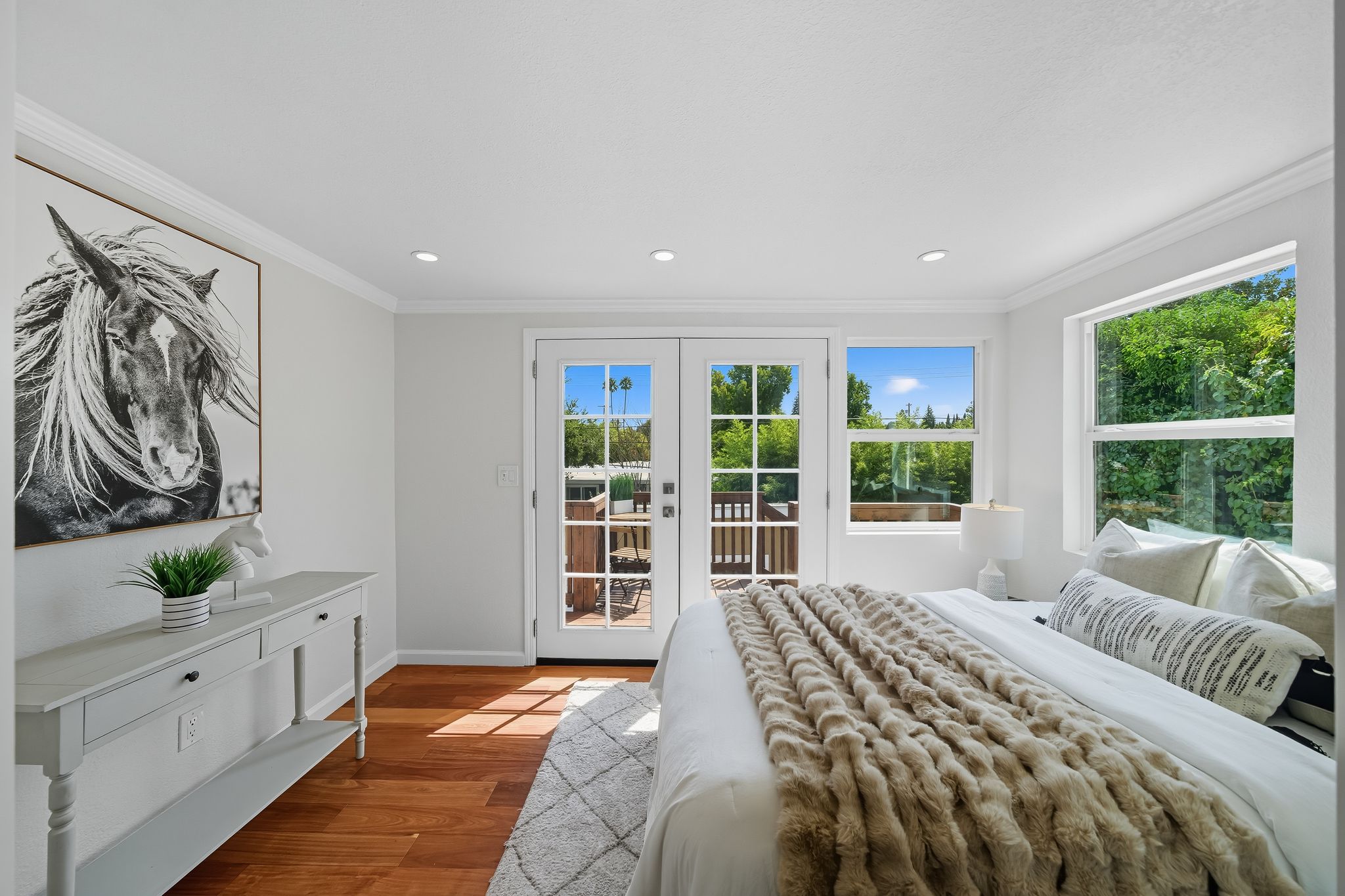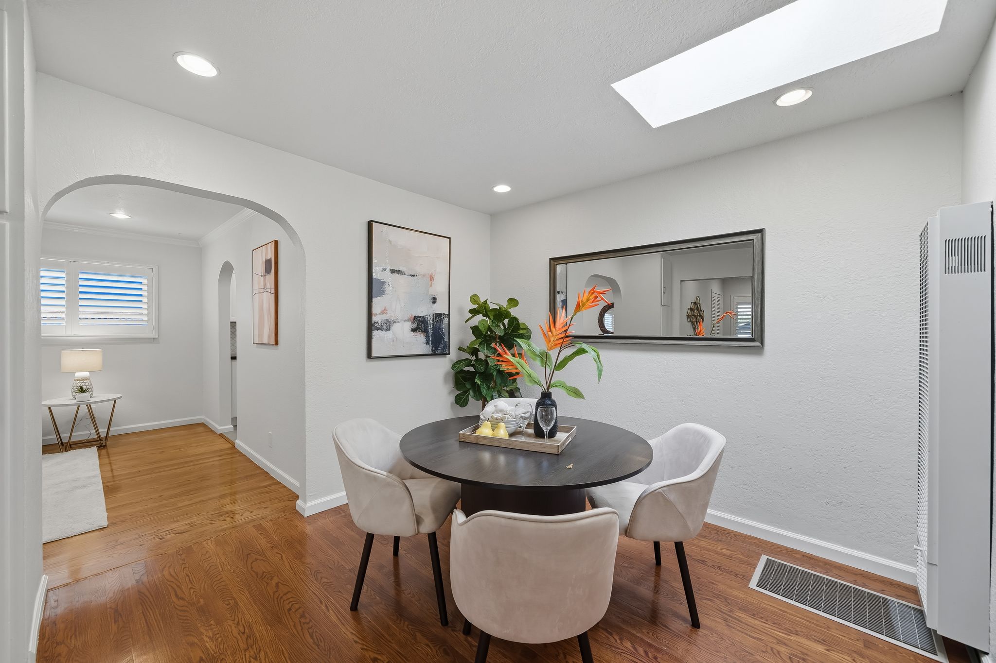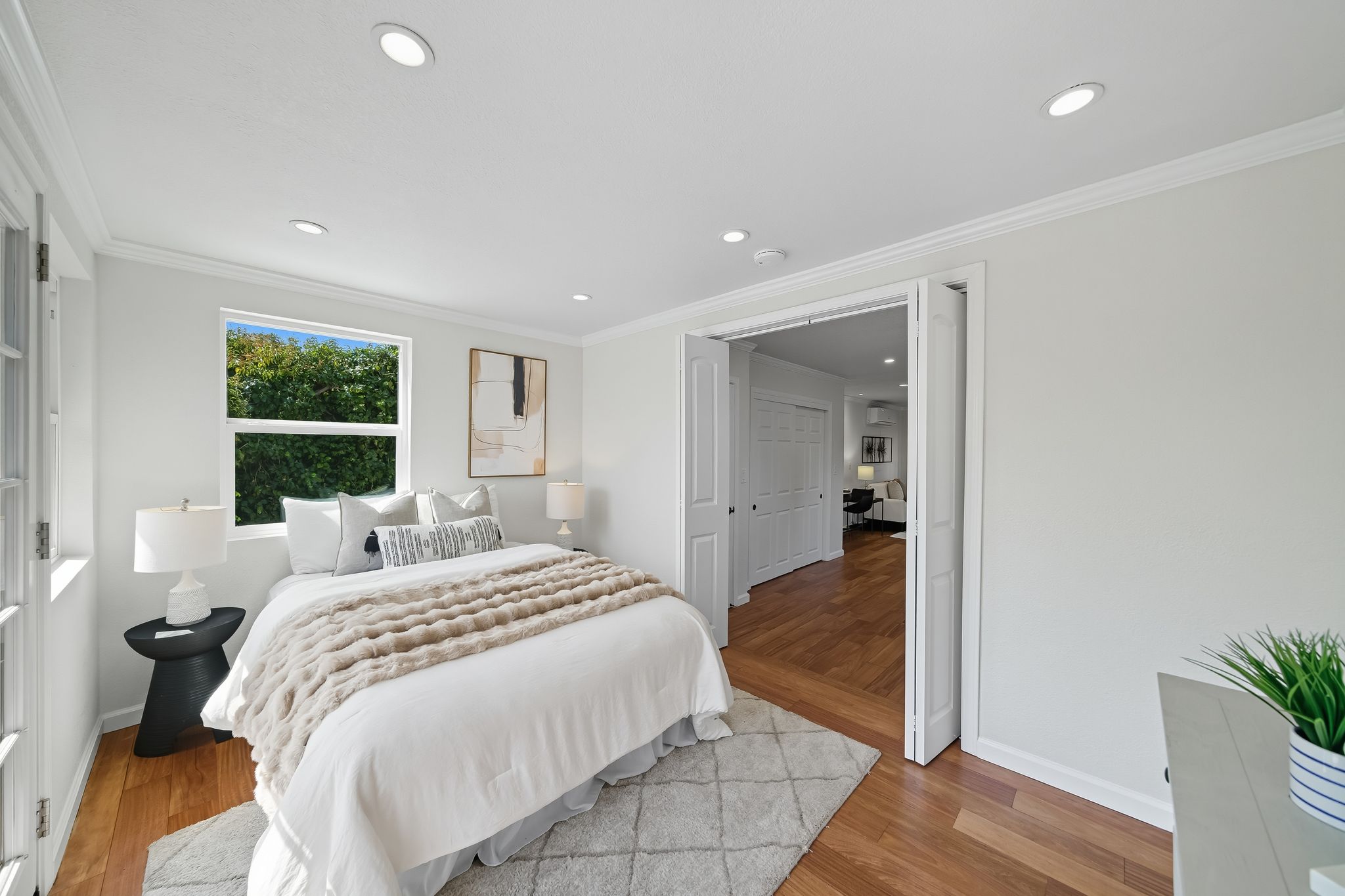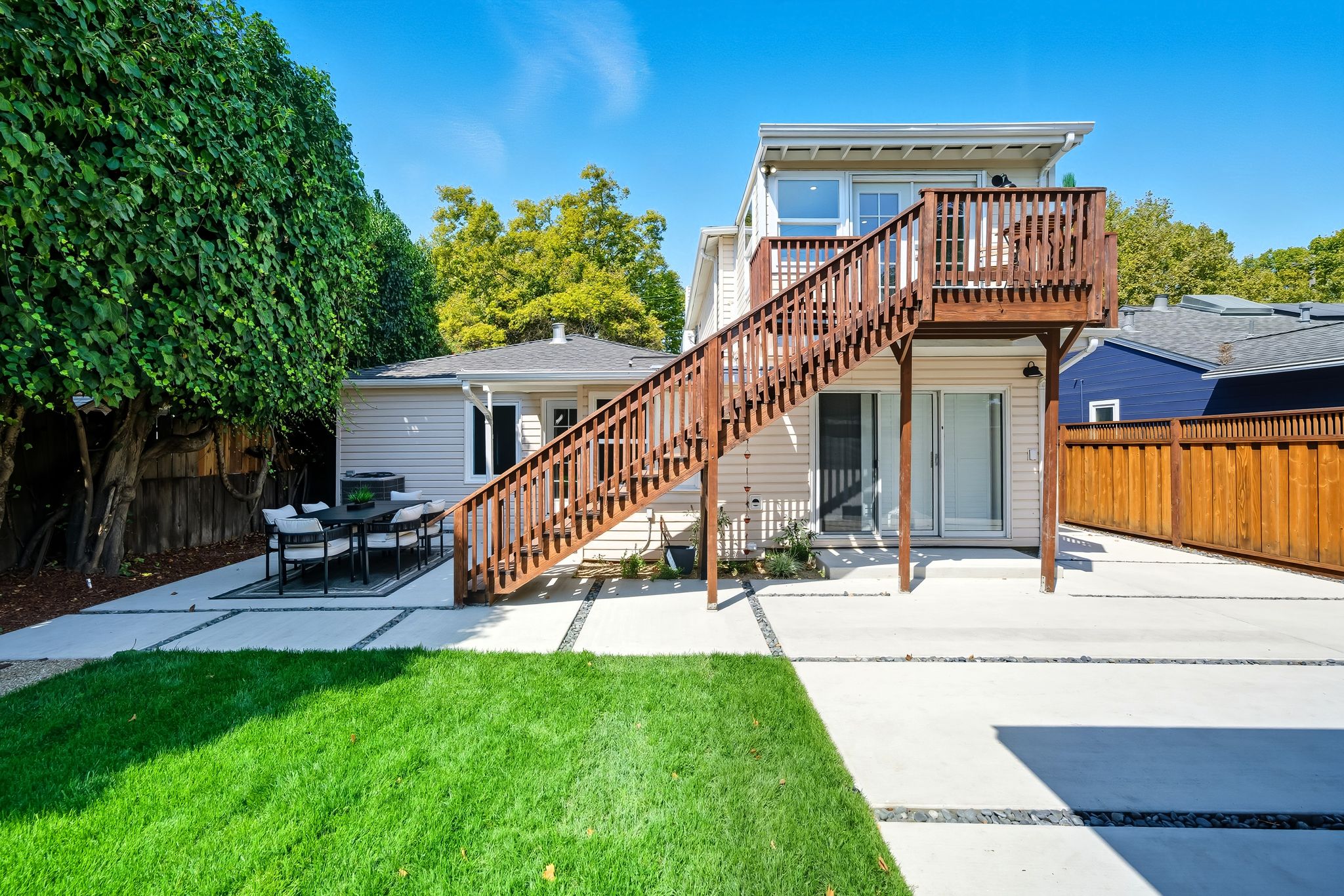 Modern amenities meet versatile living in this elegantly remodeled 4 bed, 3 bath home encompassing a main home & ADU. The main home features a spacious living room, formal dining with skylight, family room & kitchen with stainless steel appliances, quartz counters, recessed lighting & designer tile backsplash. 2 of 3 bedrooms have direct backyard access & all have walk-in closets. Both baths showcase stylish subway & mosaic tile work with new fixtures. Enjoy central AC & laundry room. Upstairs is a fully remodeled ADU perfect for income or multi-generational living with fun new retro-style appliances & quartz counters. The huge living area is perfect for relaxing, dining & working. The separate bedroom has French doors leading to a deck & staircase to the backyard. The spacious bath includes designer finishes, makeup vanity & large closet. More features include wood floors, new windows, fresh paint & new mini-split upstairs. The detached finished 2-car garage has epoxy flooring & is ideal for an office or gym. The backyard offers a lawn, large patio & shed. Just minutes from Downtown Redwood City, Costco & easy access to 101 & 280. Fleishman & Linden Parks are nearby. If you seek beautiful remodeling, convenience, flexibility & potential income, this is it!