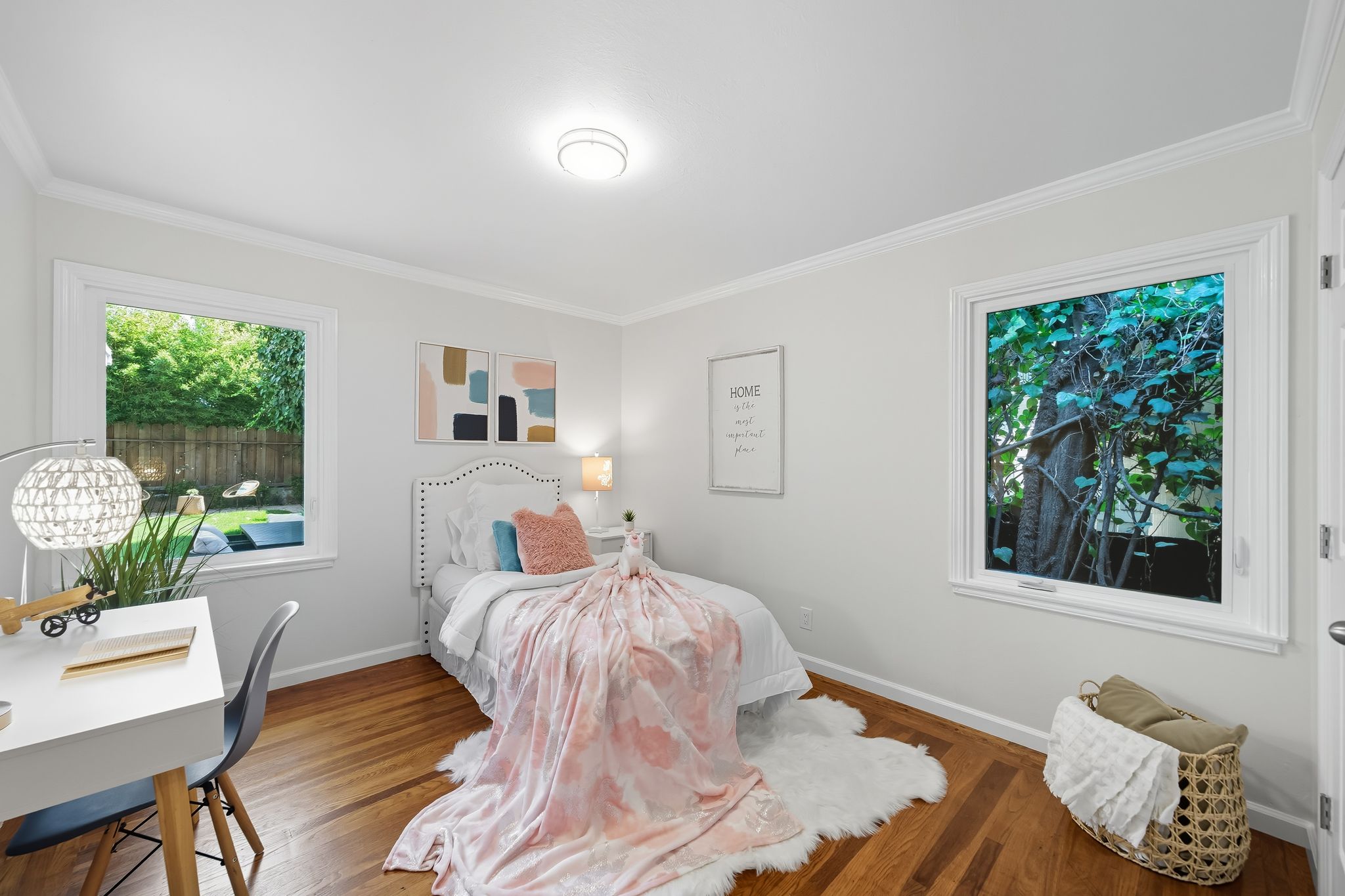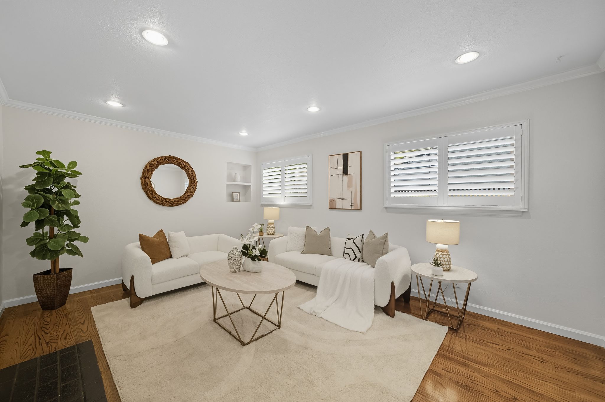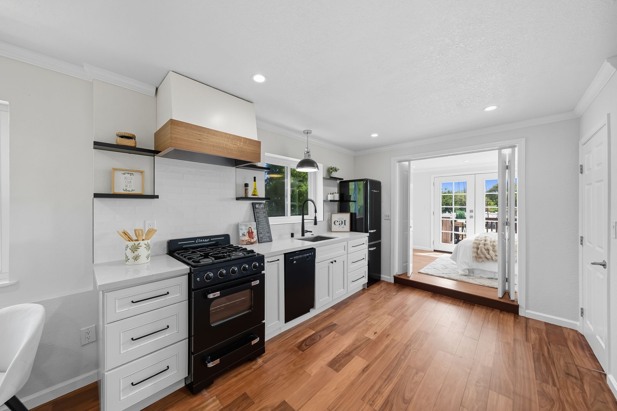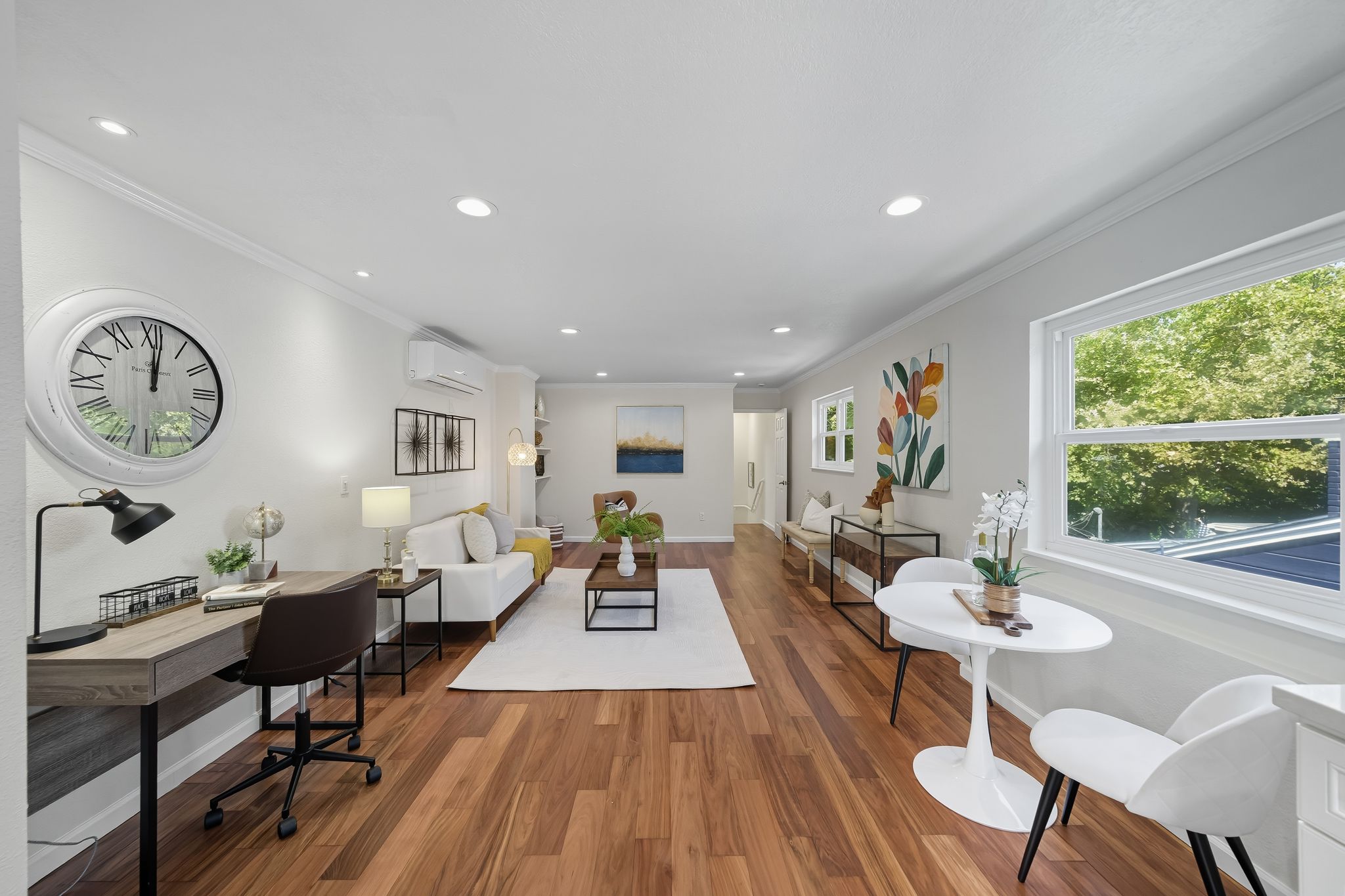 Modern amenities meet versatile living in this elegantly remodeled 4 bed, 3 bath home encompassing a main home & ADU. The main home features a spacious living room, formal dining with skylight, family room & kitchen with stainless steel appliances, quartz counters, recessed lighting & designer tile backsplash. 2 of 3 bedrooms have direct backyard access & all have walk-in closets. Both baths showcase stylish subway & mosaic tile work with new fixtures. Enjoy central AC & laundry room. Upstairs is a fully remodeled ADU perfect for income or multi-generational living with fun new retro-style appliances & quartz counters. The huge living area is perfect for relaxing, dining & working. The separate bedroom has French doors leading to a deck & staircase to the backyard. The spacious bath includes designer finishes, makeup vanity & large closet. More features include wood floors, new windows, fresh paint & new mini-split upstairs. The detached finished 2-car garage has epoxy flooring & is ideal for an office or gym. The backyard offers a lawn, large patio & shed. Just minutes from Downtown Redwood City, Costco & easy access to 101 & 280. Fleishman & Linden Parks are nearby. If you seek beautiful remodeling, convenience, flexibility & potential income, this is it!