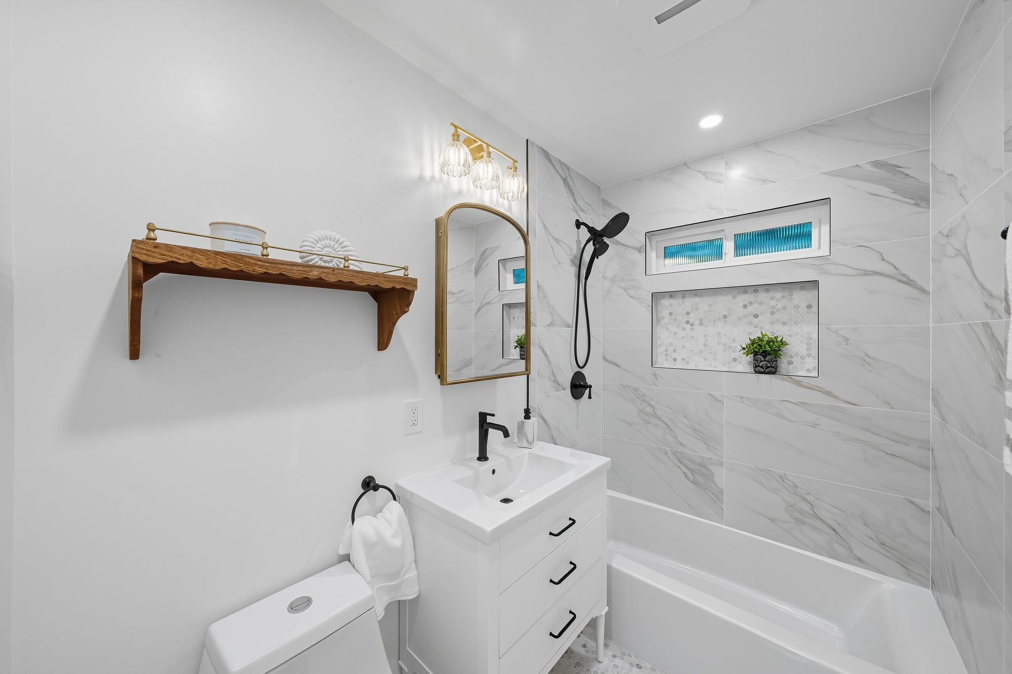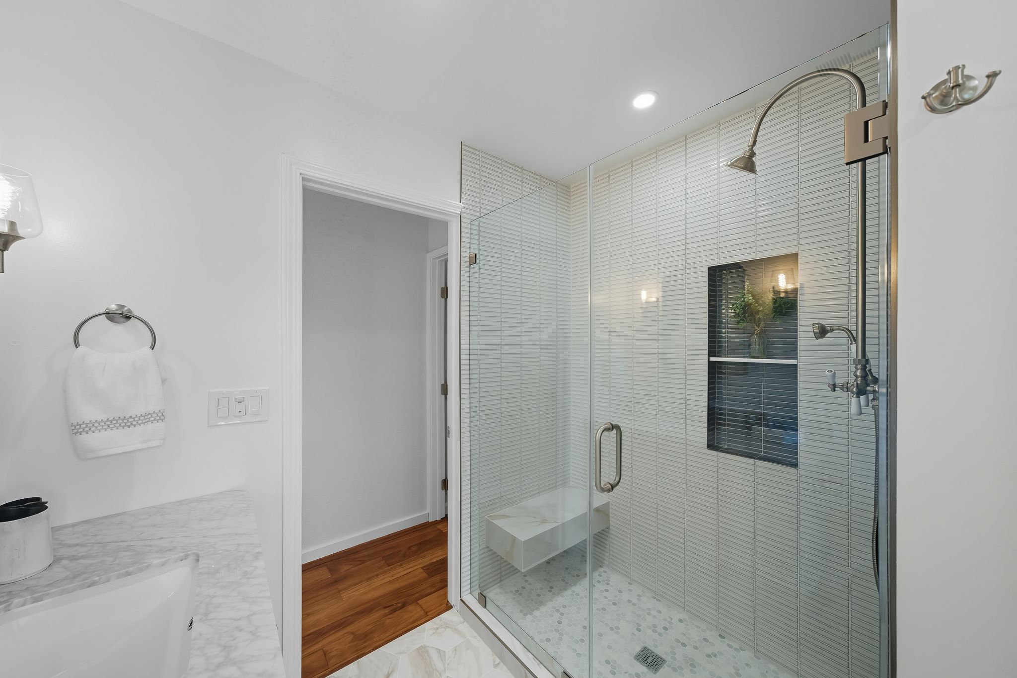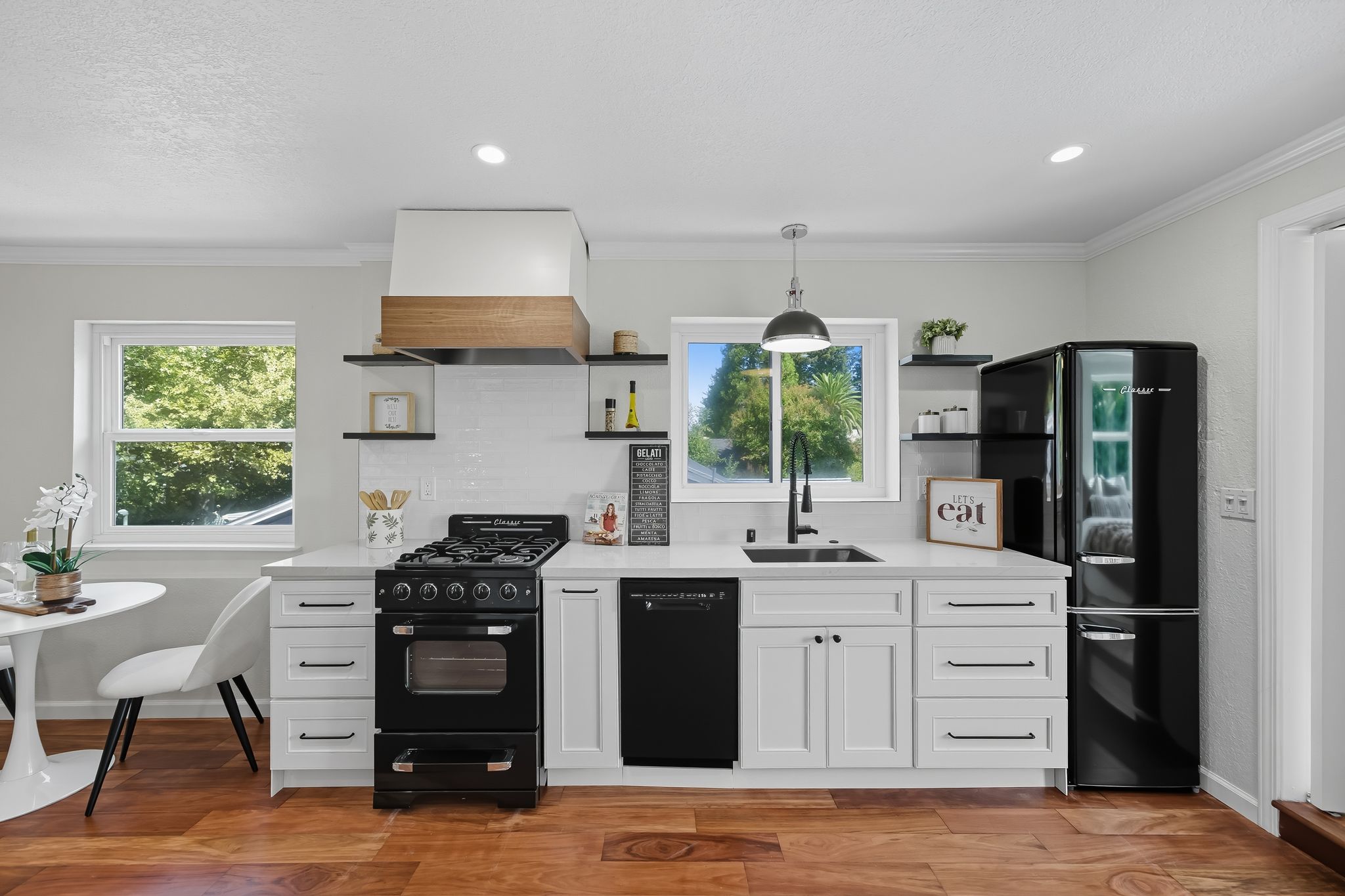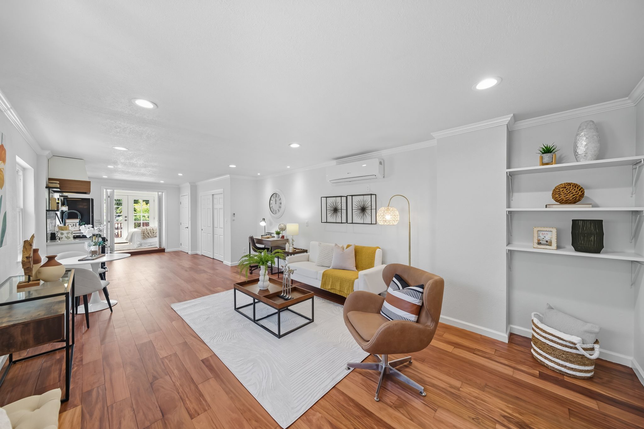 Modern amenities meet versatile living in this elegantly remodeled 4 bed, 3 bath home encompassing a main home & ADU. The main home features a spacious living room, formal dining with skylight, family room & kitchen with stainless steel appliances, quartz counters, recessed lighting & designer tile backsplash. 2 of 3 bedrooms have direct backyard access & all have walk-in closets. Both baths showcase stylish subway & mosaic tile work with new fixtures. Enjoy central AC & laundry room. Upstairs is a fully remodeled ADU perfect for income or multi-generational living with fun new retro-style appliances & quartz counters. The huge living area is perfect for relaxing, dining & working. The separate bedroom has French doors leading to a deck & staircase to the backyard. The spacious bath includes designer finishes, makeup vanity & large closet. More features include wood floors, new windows, fresh paint & new mini-split upstairs. The detached finished 2-car garage has epoxy flooring & is ideal for an office or gym. The backyard offers a lawn, large patio & shed. Just minutes from Downtown Redwood City, Costco & easy access to 101 & 280. Fleishman & Linden Parks are nearby. If you seek beautiful remodeling, convenience, flexibility & potential income, this is it!