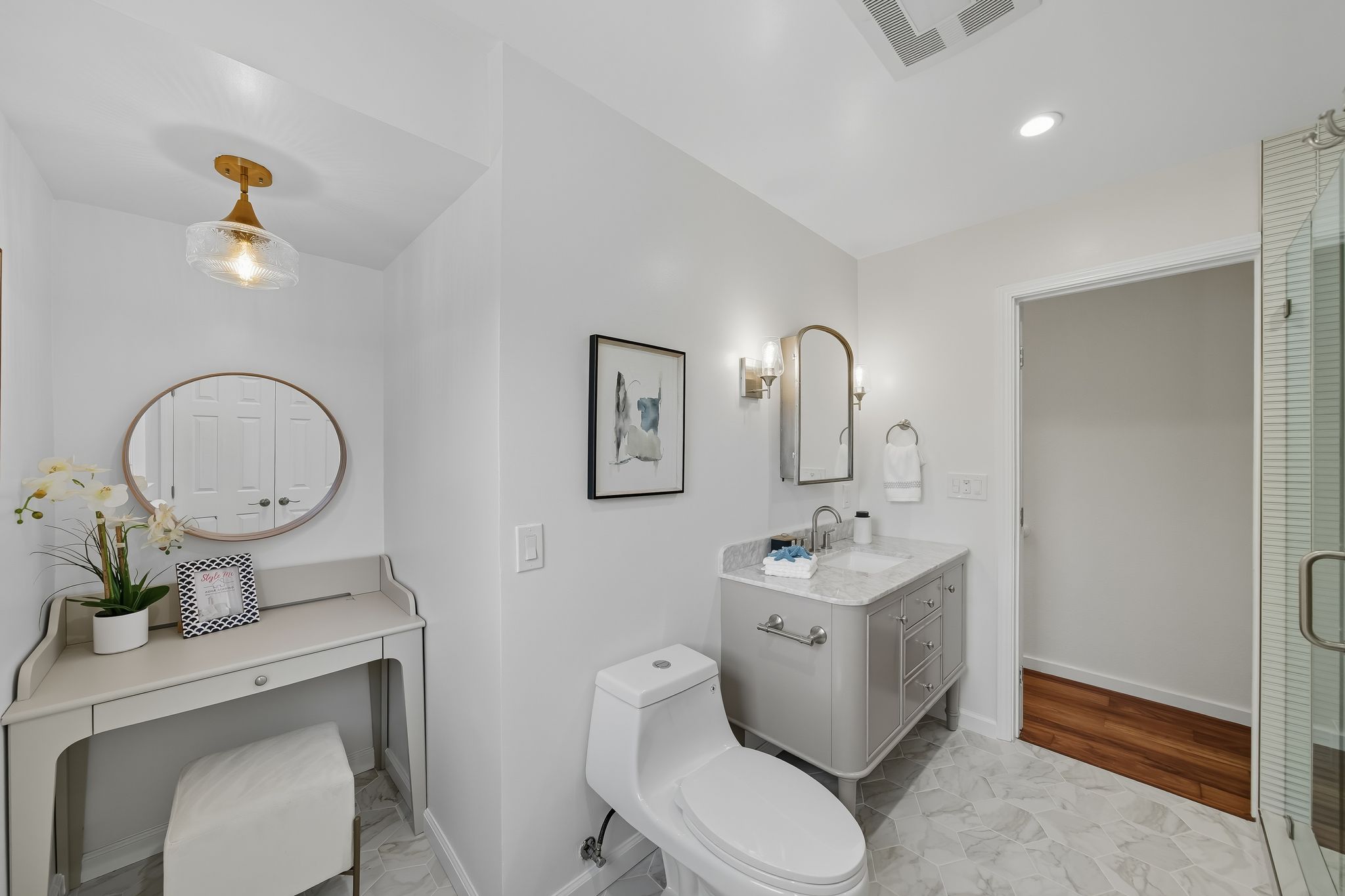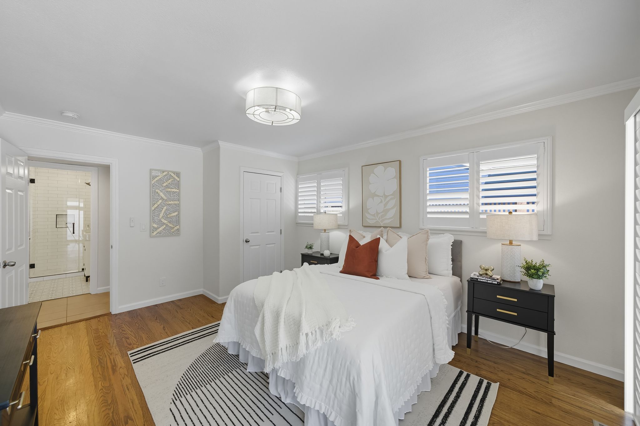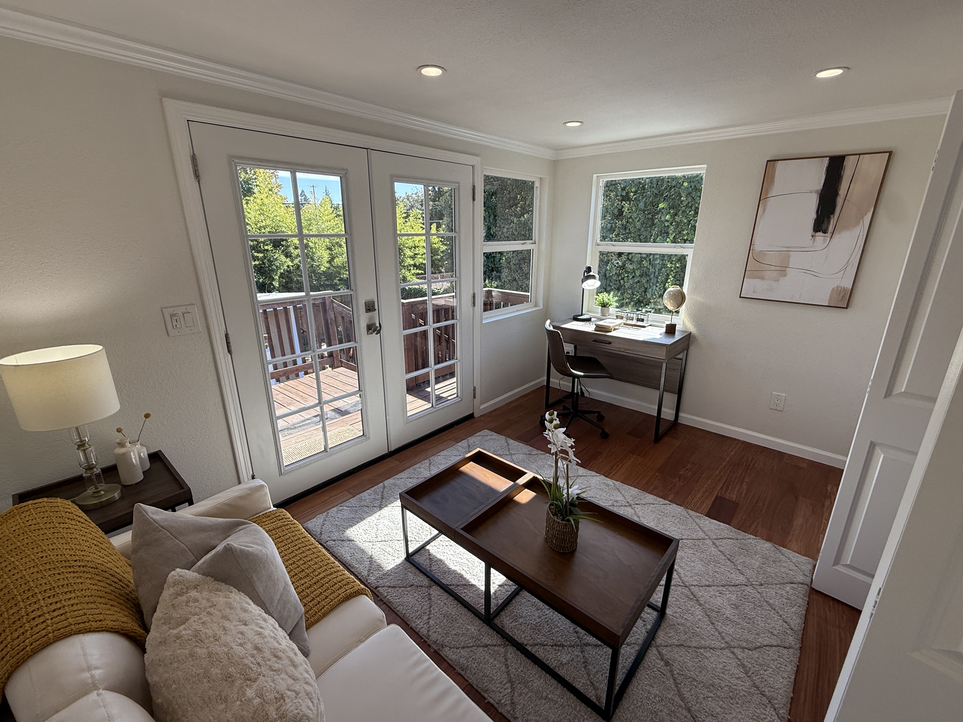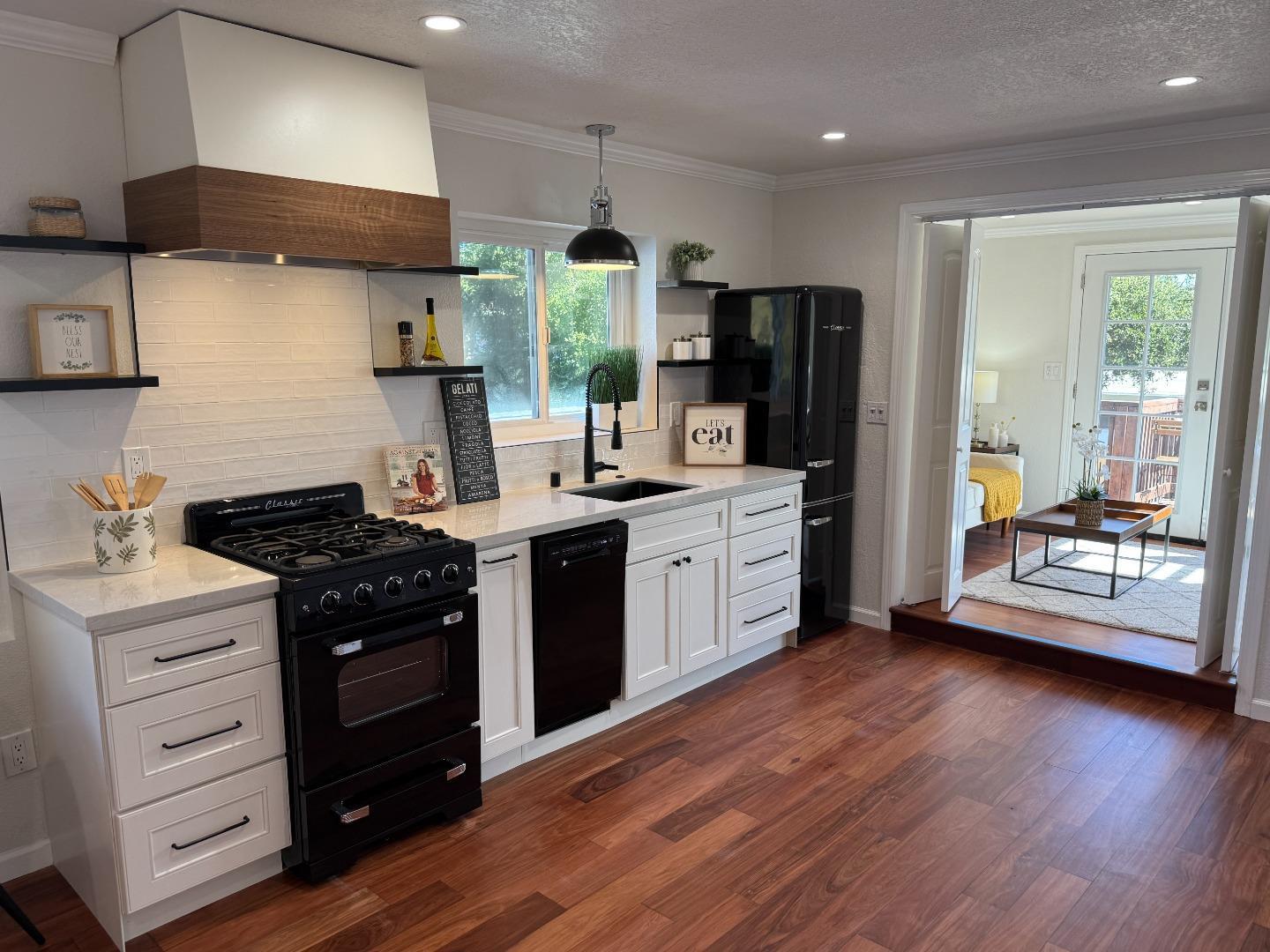 Modern design meets comfortable living in this Redwood Oaks home with space for everyone featuring 4 bedrooms plus an office & 3 full baths. Step inside to the open living room, flowing to a formal dining room with skylight, family room & kitchen with stainless steel appliances, quartz counters, recessed lighting & designer backsplash. Retreat upstairs to the stunning primary suite with endless amenities including a spa-like bath featuring walk-in shower, makeup vanity & large closet, as well as an adjacent, bright office with French doors leading out to the deck & convenient kitchenette for making coffee to start your day, which also offers flexibility as a potential 2nd unit. Downstairs the 3 bedrooms all have walk-in closets & 2 directly access the backyard. Both main level baths showcase stylish tilework & new fixtures. Enjoy laundry on both levels. More features include wood floors, new windows & doors, fresh paint & new AC systems on both levels. The detached finished 2-car garage has epoxy floors & is ideal for an office or gym. The backyard offers a lawn, patio & shed. Just minutes from Downtown Redwood City, Costco & easy access to 101 & 280. Fleishman & Linden Parks are nearby. If you seek a beautiful remodel & convenience, this is it!