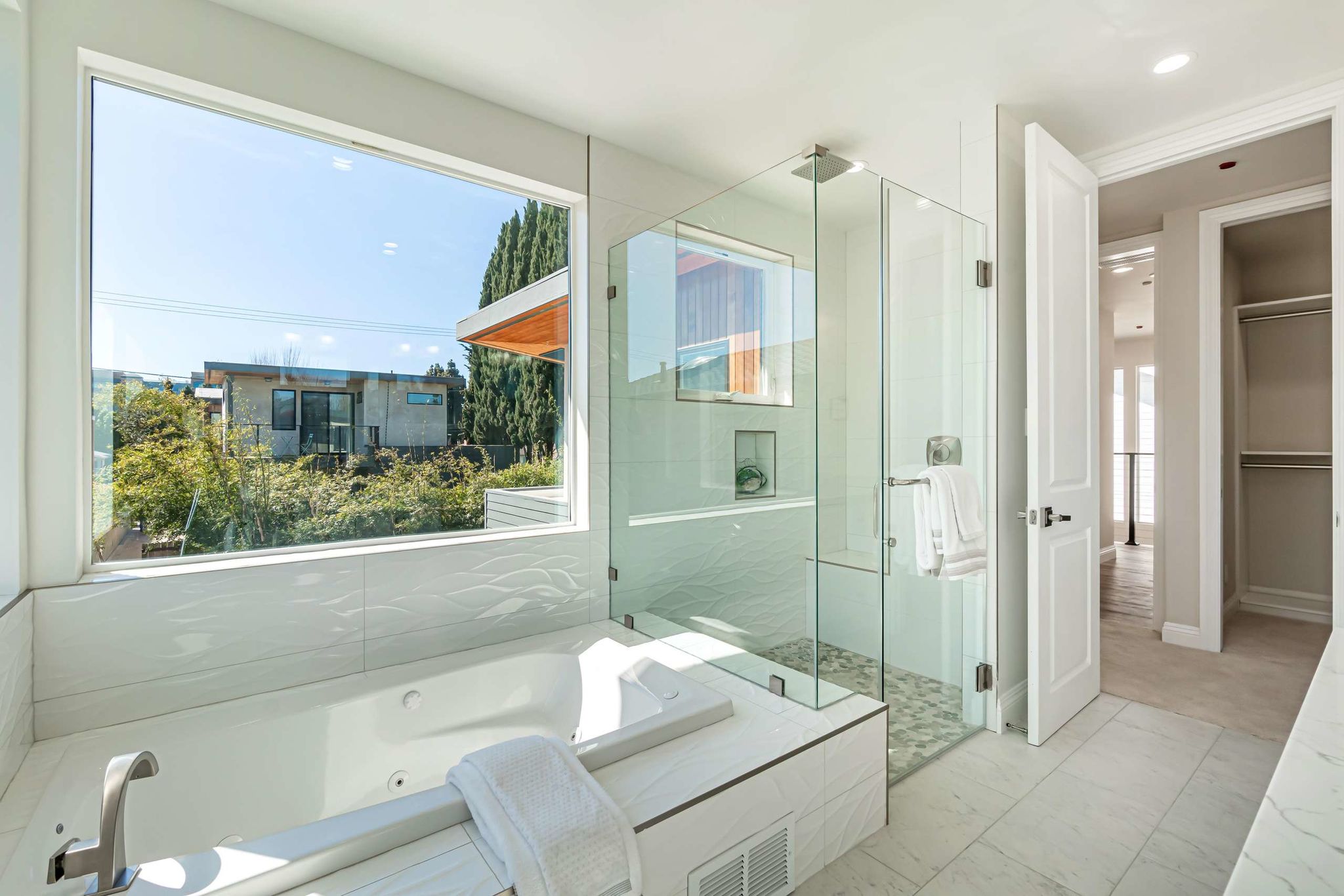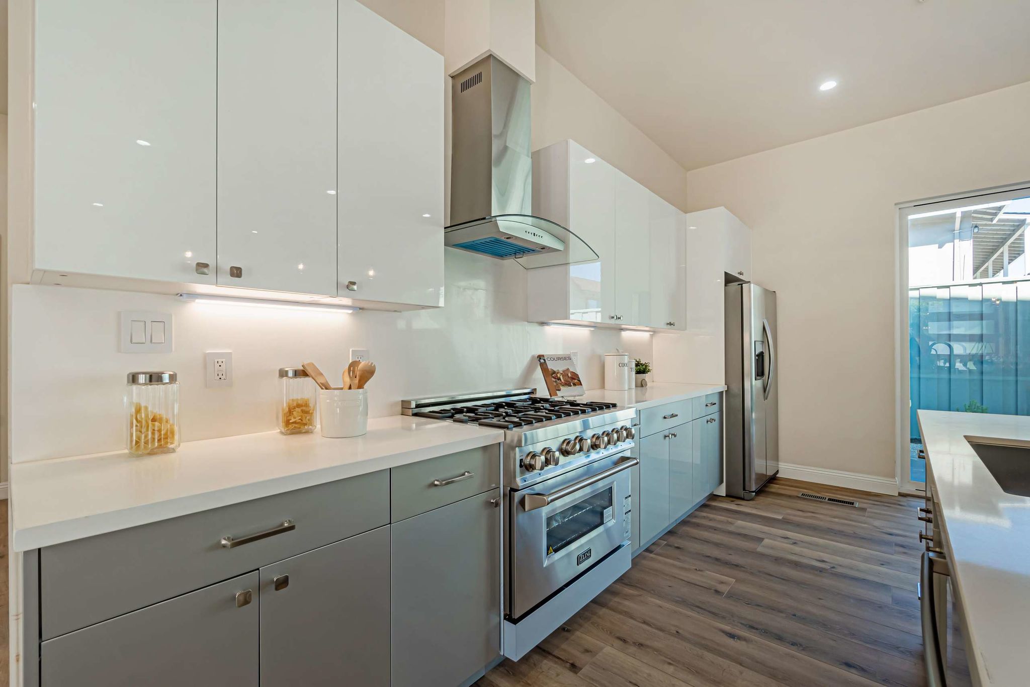 这座全新的超现代住宅于2020年竣工。住宅内设有四间卧室和三间优雅大气的浴室,面积为2337平方英尺(根据计划)。住宅外部也有很多极富魅力的细节设计,包括大型景观落地窗,雪松墙板和屋檐,以及一面石墙。一楼是十分宽敞的区域,大部分空间铺设了白橡木复合地板,还有十英尺高的天花板。这一层主要包括:配有燃气壁炉的迷人的休息区,豪华的用餐区和一个大客厅。由著名设计师设计的厨房配有Zline品牌的专业六气头燃气灶,不锈钢冰箱,博世品牌洗碗机,白色石英石台面,以及一个可以容纳四人早餐吧的大岛,还有很吸引人眼球的吊灯。