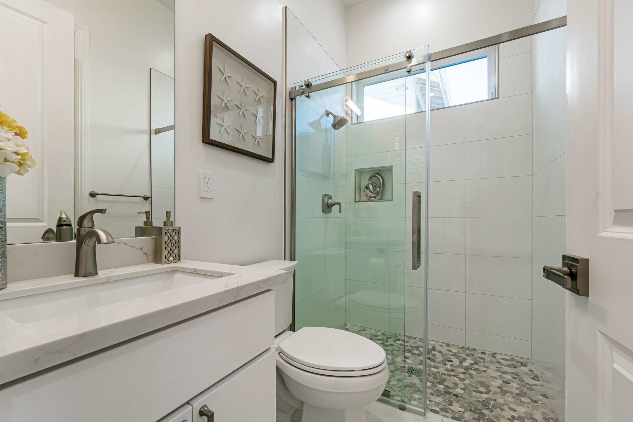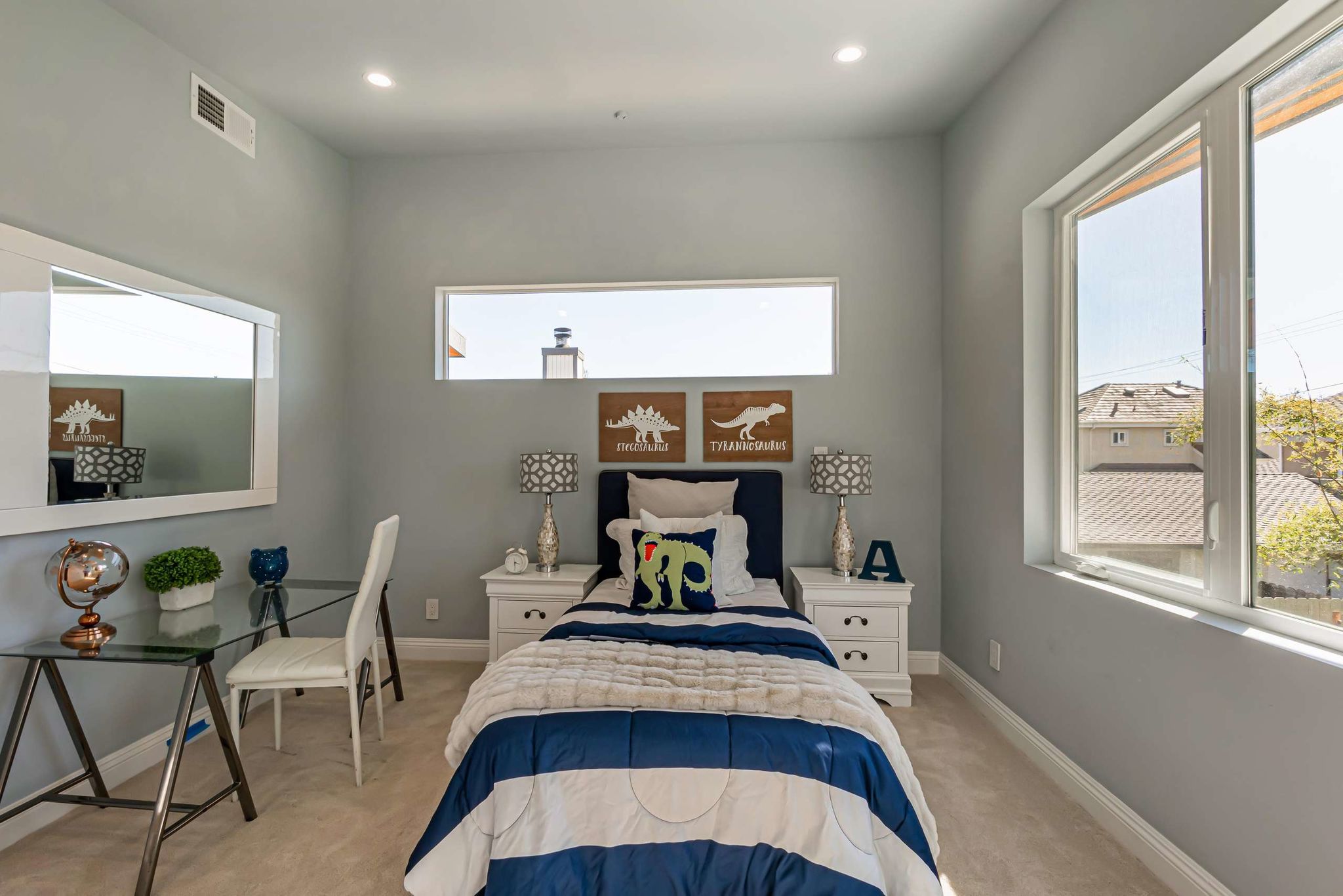 第四间卧室在楼下,并且旁边配有一个全浴室,整个区域作为客房或是办公室再适合不过了。其他设施还包括:两个空调机组,无水箱热水器,两个Nest品牌恒温器,智能门铃,双层玻璃窗,整栋住宅的屋顶排风扇以及铺设了环氧树脂地板的两车位车库。我们还特别安装了滑动门,分割室内外空间,以便您可以在私人庭院中享受美好时光。