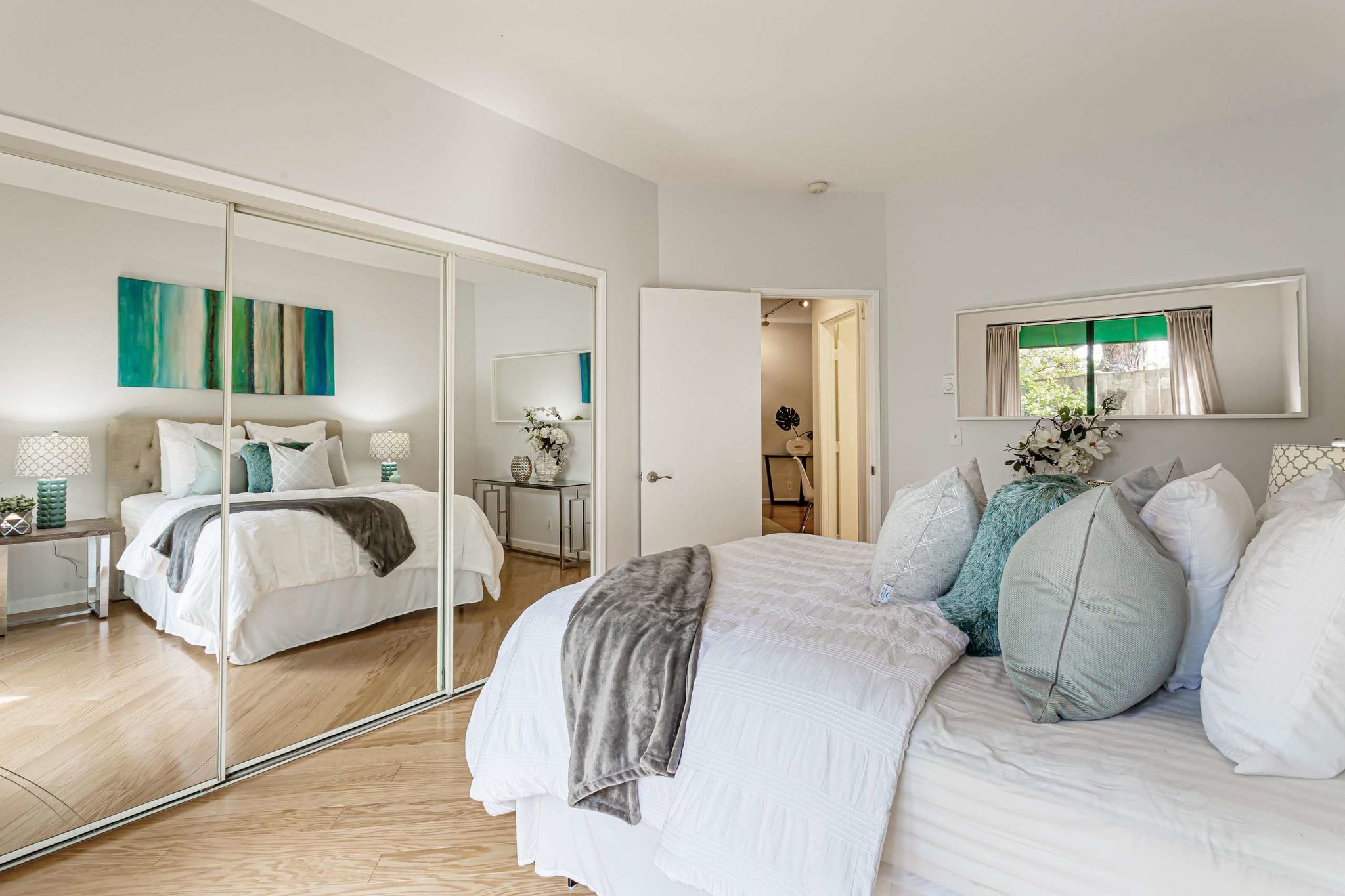 cabinetry, and recessed lighting. The generously sized master bedroom is lit