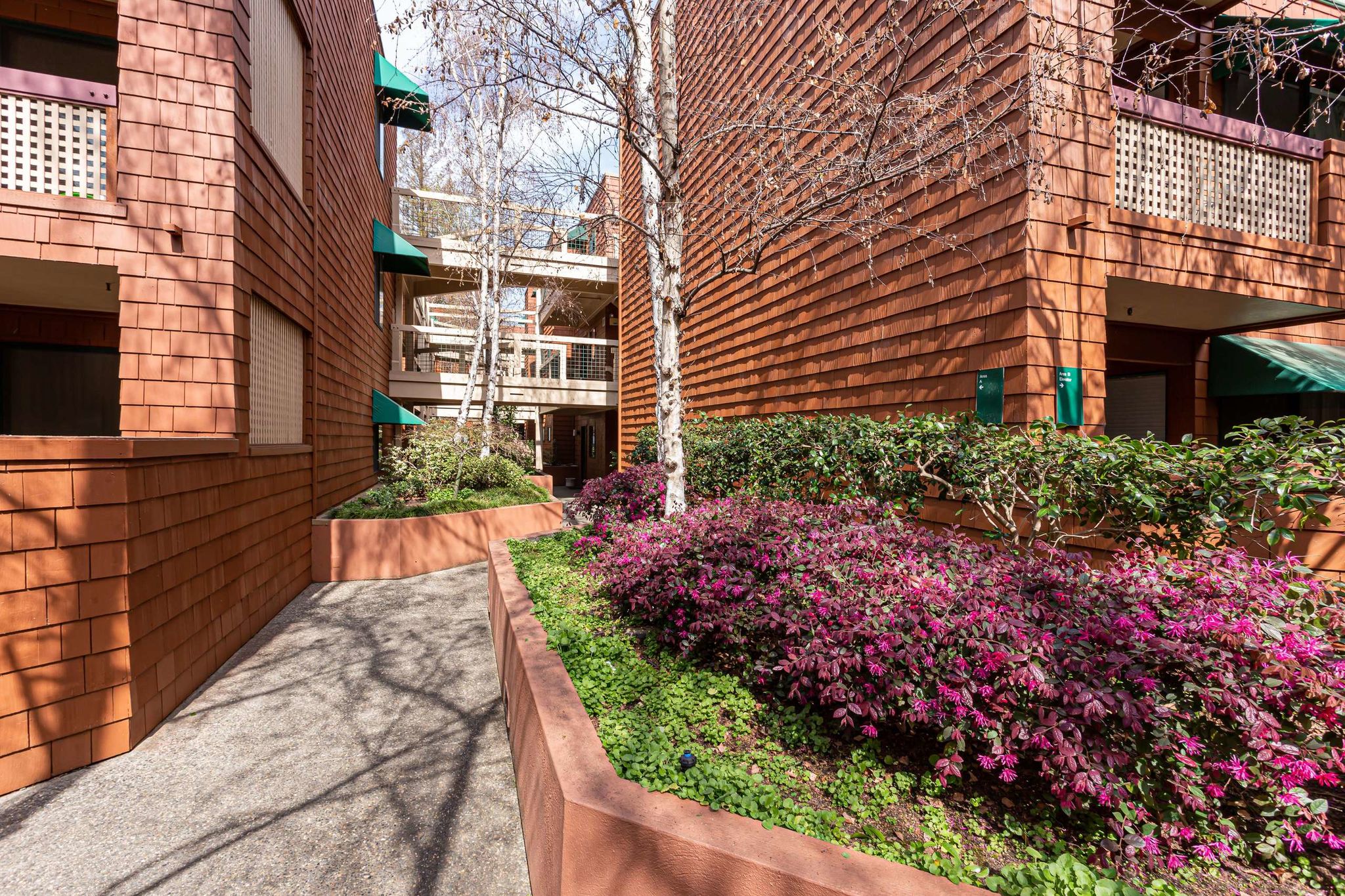 Charming and private, this condo has two bedrooms and one