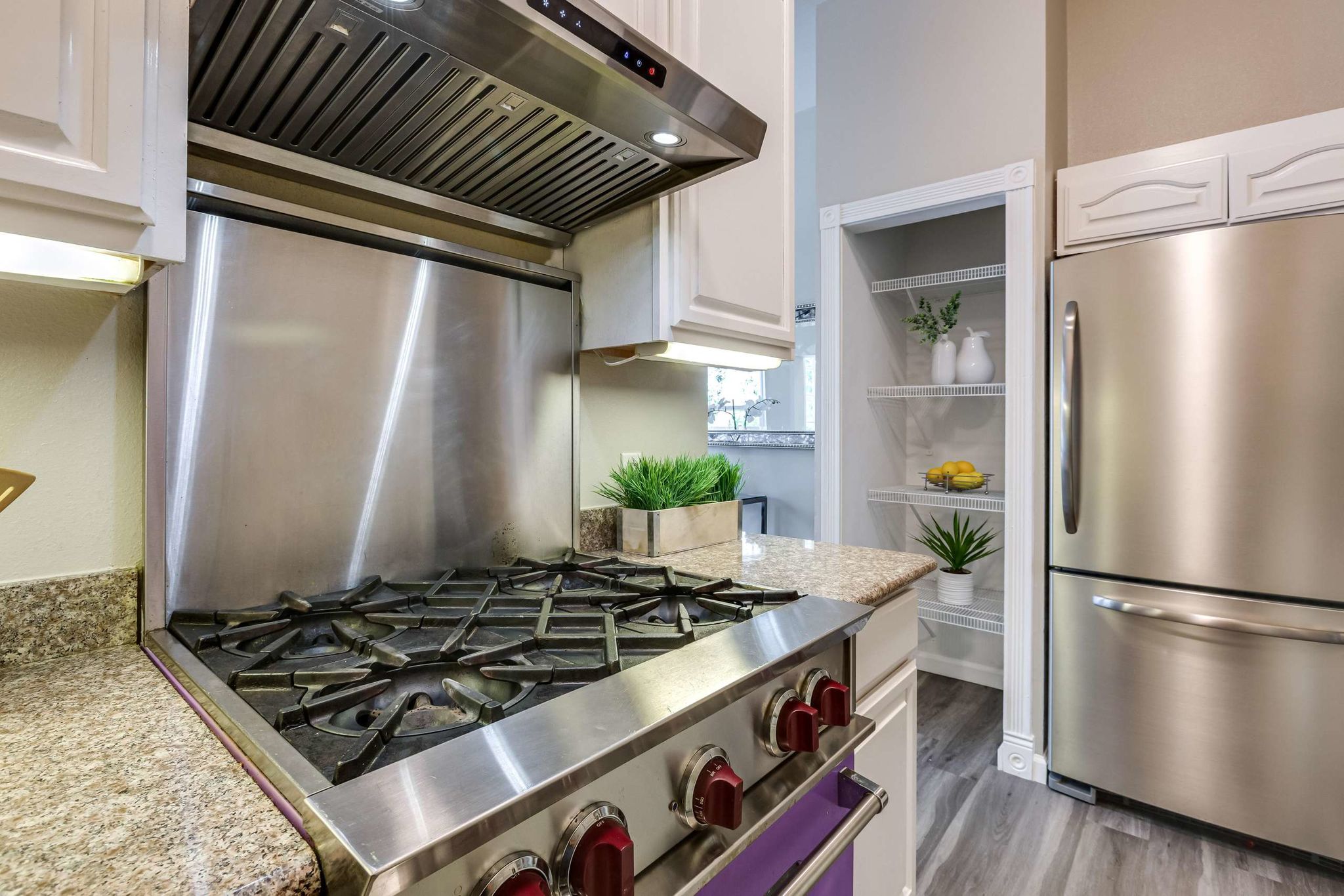 The chef’s kitchen is at the heart of the home with a high-end Blue Star custom